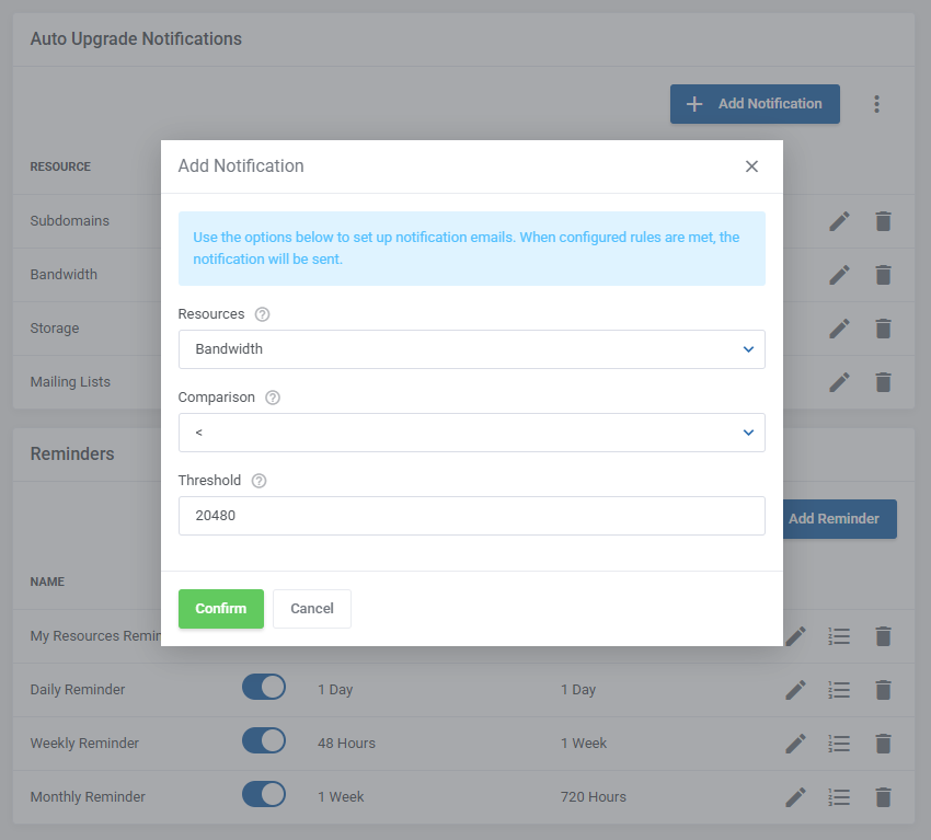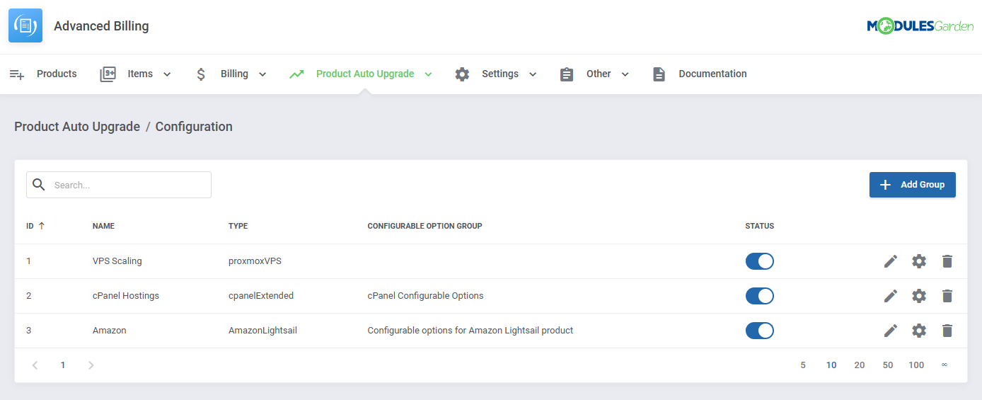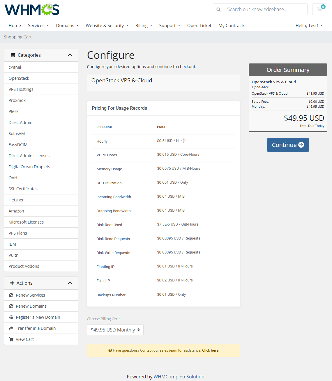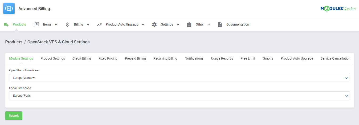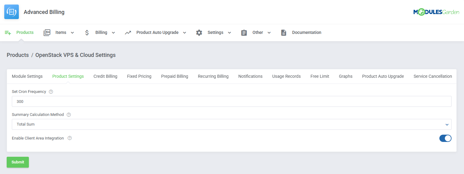 Este módulo soporta múltiples divisas y está integrado con casi 20 de los módulos mas famosos, incluyendo cPanel, Plesk, Proxmox VE y OpenStack. Podrás seleccionar de una gran variedad de alternativas avanzadas de cobro, tales como cobro por hora, por recursos usados, crédito y prepago, precios fijos e incluso modificar completamente los pagos recurrentes. Adicionalmente, los productos y sus opciones configurables pueden ser incrementados o decrementados en el siguiente cambio en base al consumo de recursos. Todavía mas, podrás ajustar todas las propiedades básicas de las facturas, así como definir características suplementarias, tales como un cargo mínimo para las facturas generadas. Al mismo tiempo, tus clientes podrán crear múltiples recordatorios por correo electrónico cuando se acerquen al límite lo excedan para cada recurso.