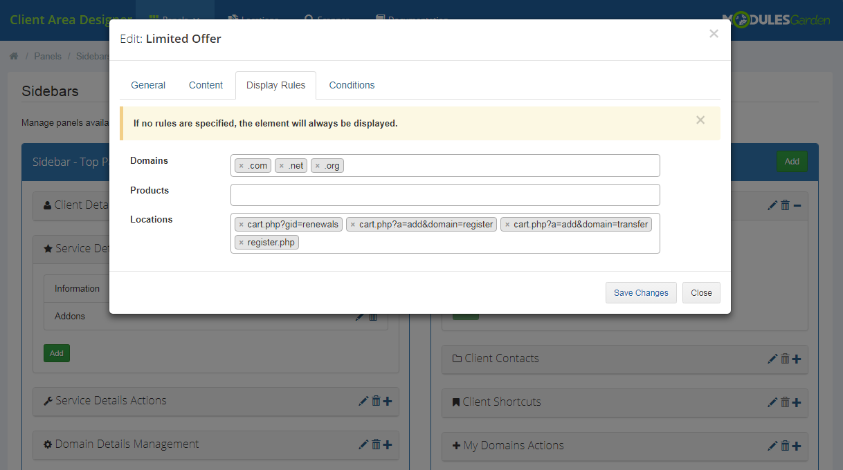 Client Area Designer