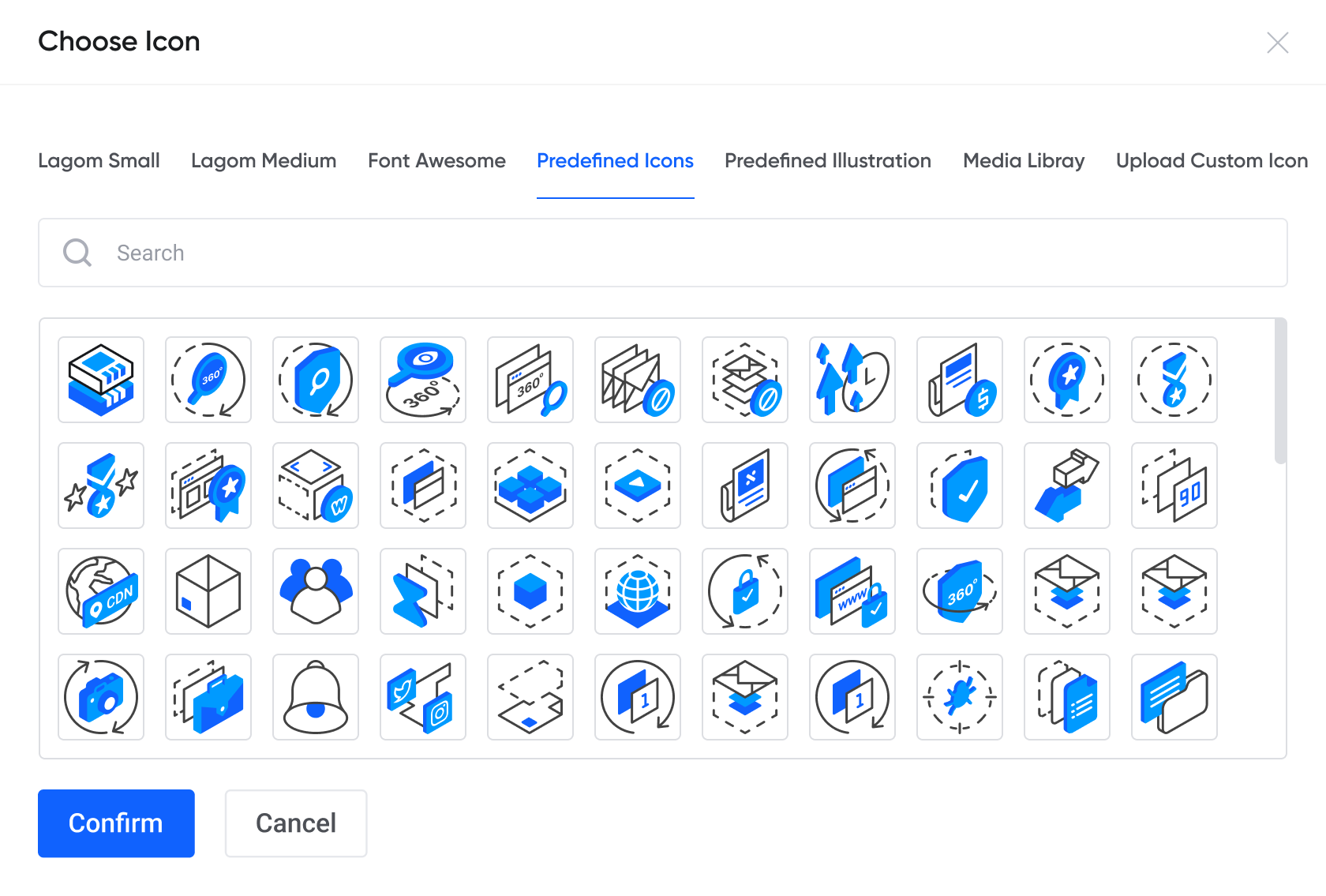 El módulo te permite seleccionar librerías de medios y de íconos prediseñados para usar en tus notificaciones, o también puedes subir los propios.