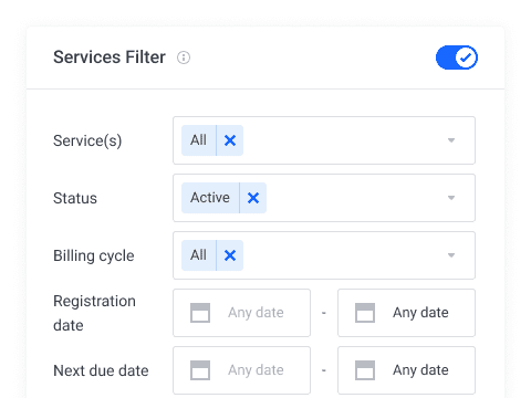Este módulo te permite establecer filtros para que las notificaciones lleguen solo a ciertos clientes, o bien, hacerlas generales. Dentro de los filtros encontramos grupos de clientes, clientes con un producto o servicio activo, clientes con cierto tipo de dominios registrados, la página dentro de tu WHMCS que estén visitando y hasta las opciones de productos activas para cualquiera de sus productos o servicios. También puedes definir el rango de fechas en que deseas que la notificación sea visible.