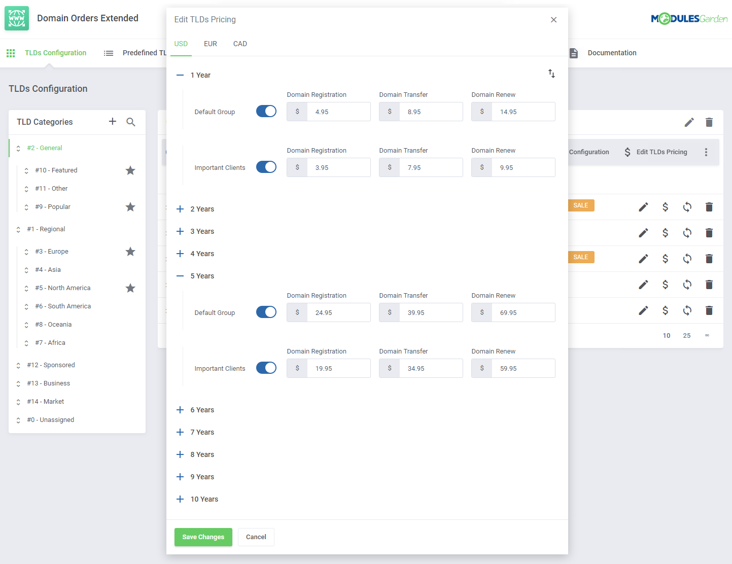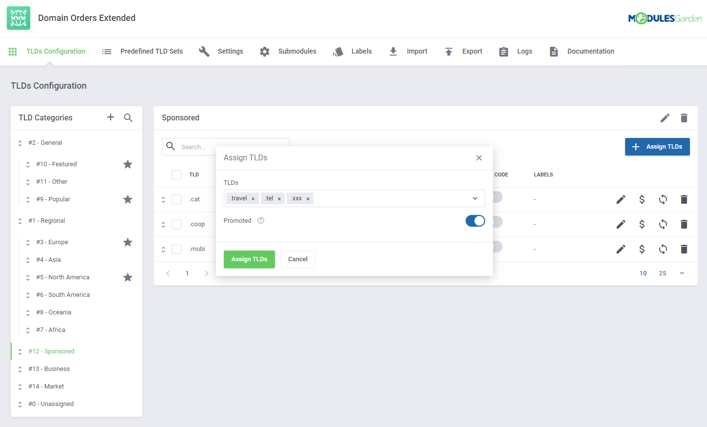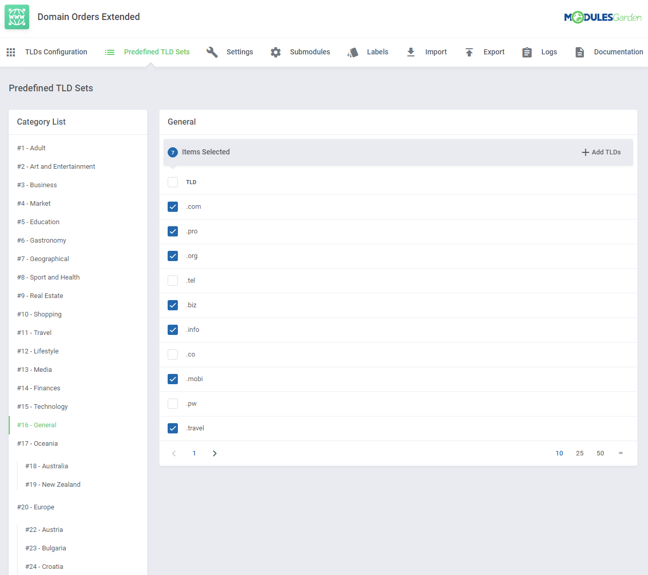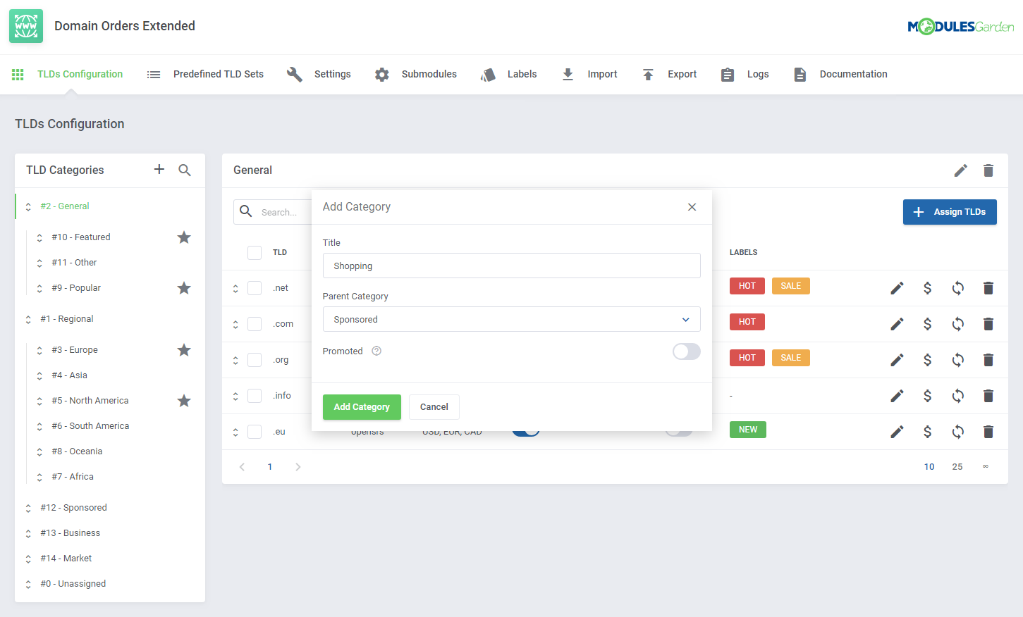 Domain Orders Extended para WHMCS incrementa la colección de herramientas para búsqueda de dominios en tu sistema, permitiéndote organizar los tipos de dominios por categorías y ejecutar acciones por lotes en dichos dominios.