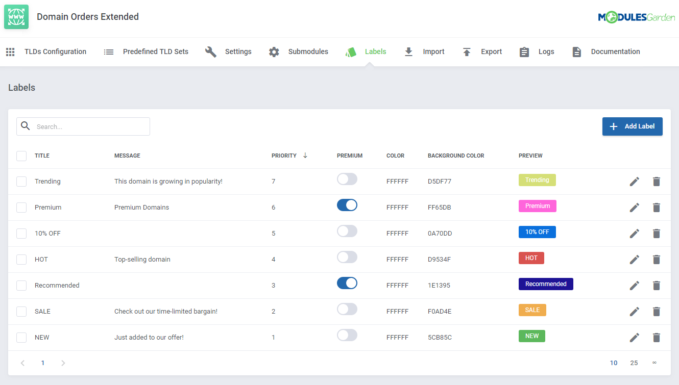 Con soporte para dominios premium y precios escalonados, se introduce una alternativa de cobro para ciertos dominios y grupos de clientes. La aplicación de etiquetas personalizables permite mejorar la experiencia de búsqueda de dominios.