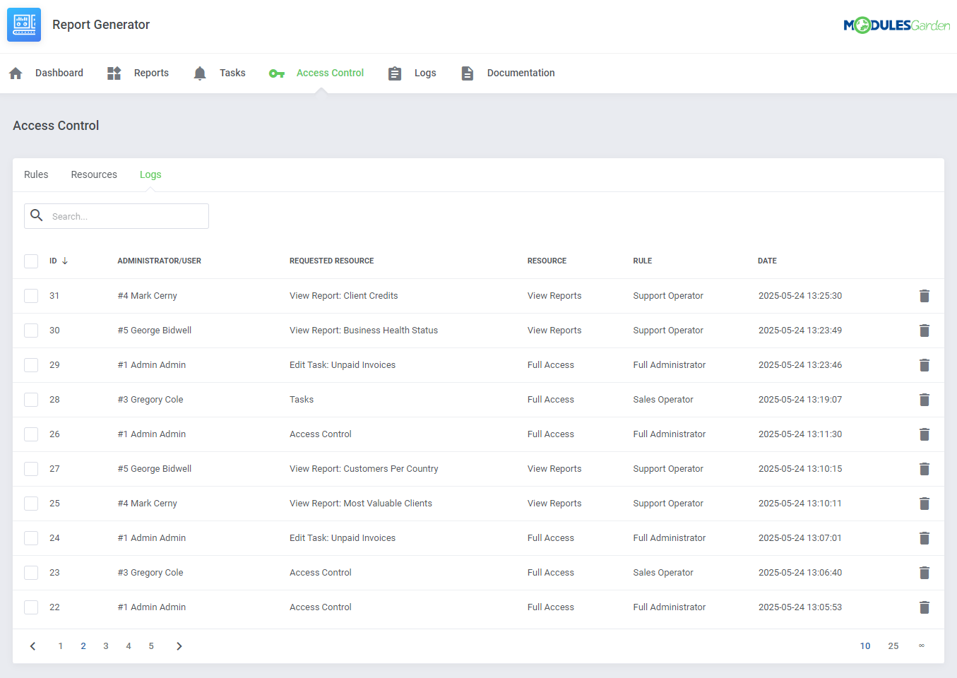 También puedes controlar el nivel de acceso de tu personal a los datos y funciones de este módulo.
