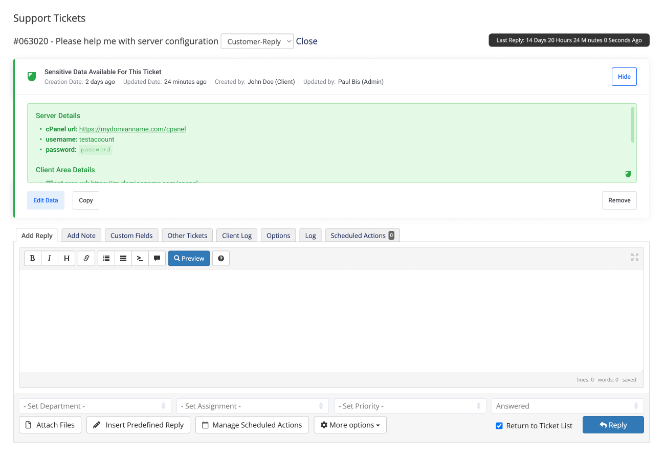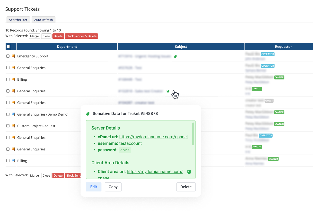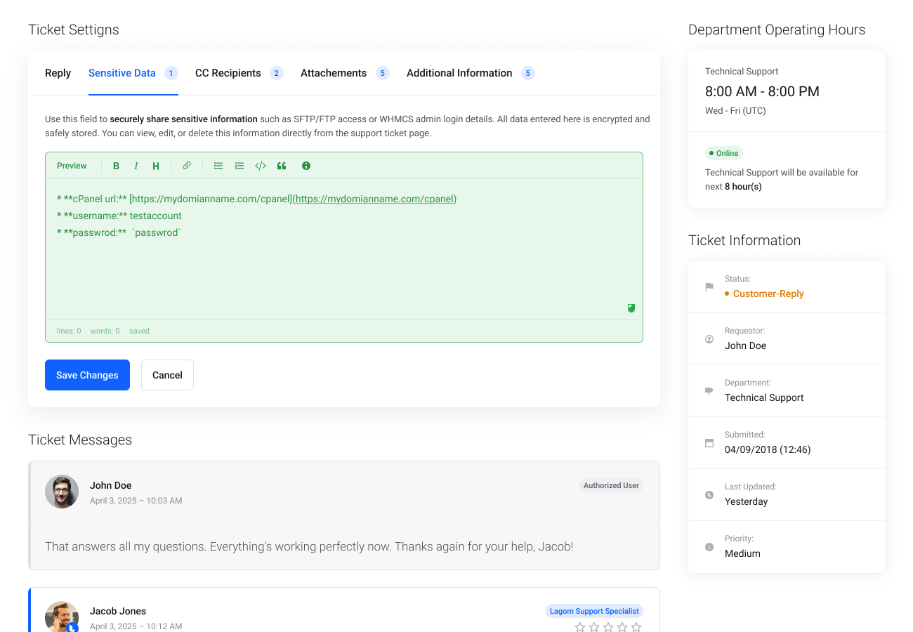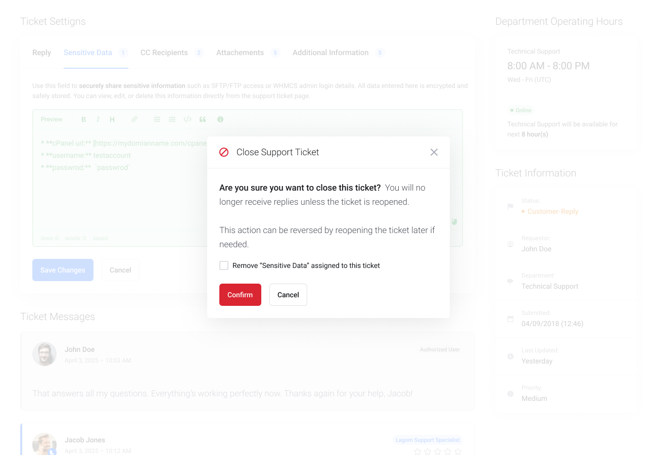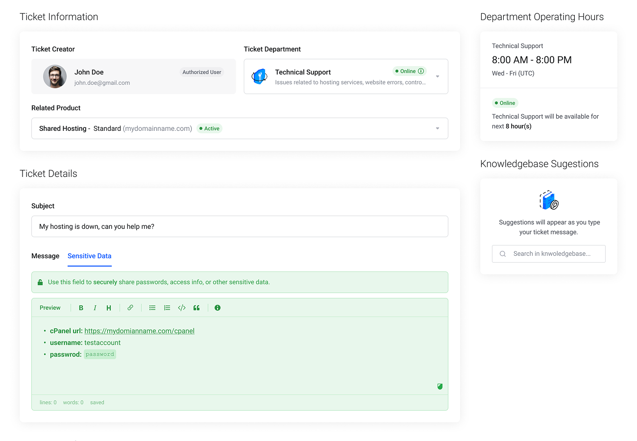 Permite a tus clientes enviar datos confidenciales en los tickets de WHMCS de manera segura y fluida.