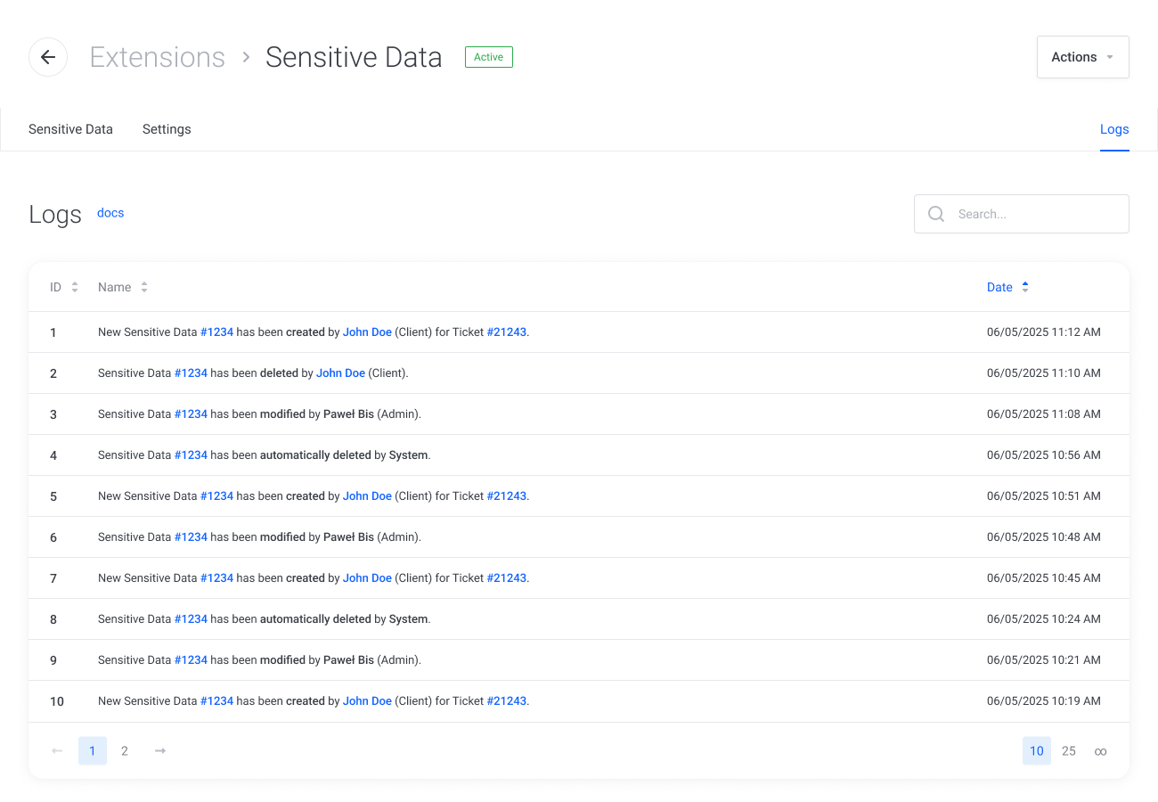 Concede a tus clientes la posibilidad de visualizar y administrar datos confidenciales aun después de enviar un ticket para actualizar información incorrecta o hacer aclaraciones de entradas anteriores. Así mismo, proporcionar la libertad para eliminar datos confidenciales de los tickets cuando ya no sean necesarios.